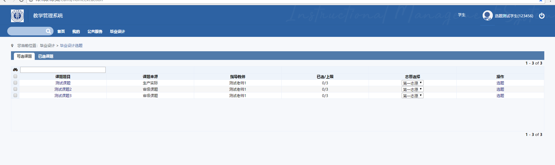 学生可在已选课题,以及我的课题查询自己的课题。